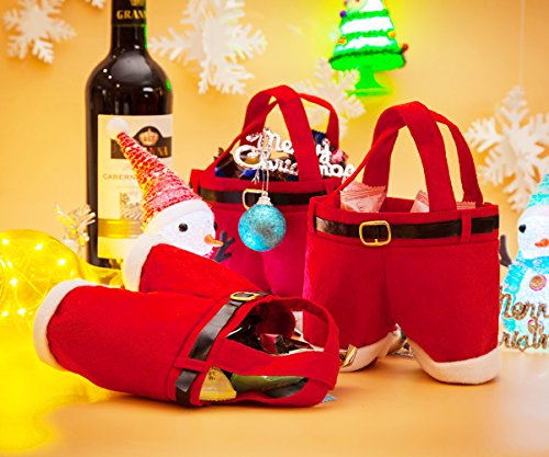 3pcs Candy Bag Christmas Gift Santa Claus Pants Wedding Wine Holder Xmas Shopping Storage Bags Stocking Filler Treat Present Chocolate Handbag for Kids (Red)