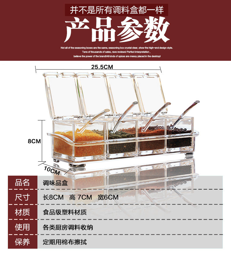 Color Classification: transparent color spice jar three grid sets the transparent color crystal spice jar four-frame kit