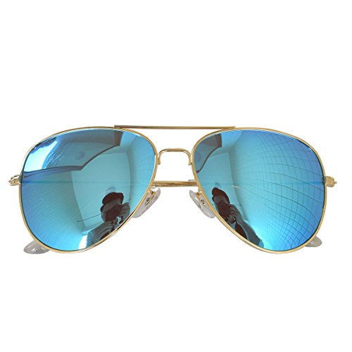 Classic aviator sunglasses with metal frame featuring padded tips and etched logoing at lens