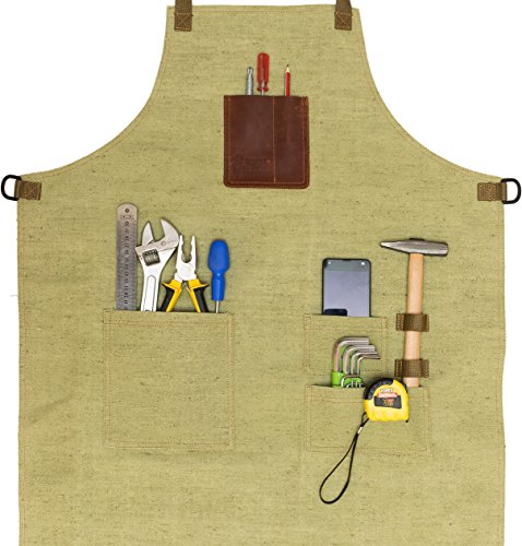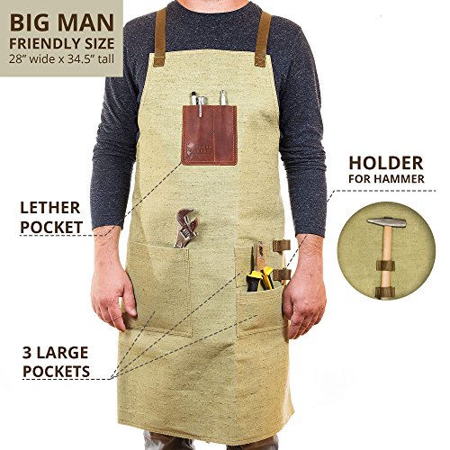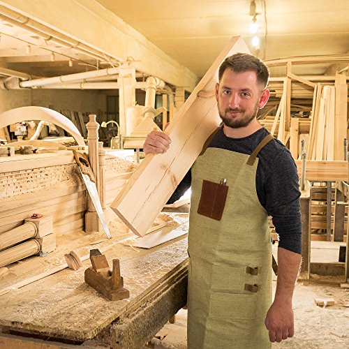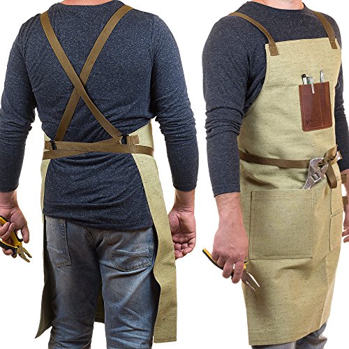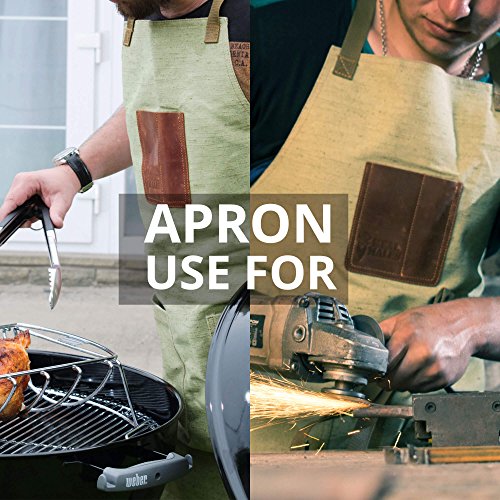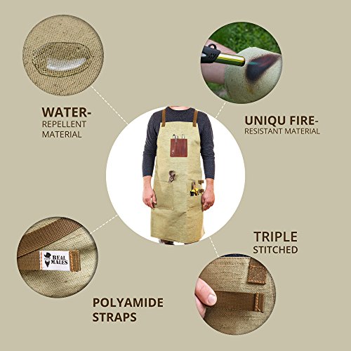 - DEPENDABLE QUALITY: Made out of a unique fire-resistant material, our work aprons for men with pockets are much more durable than any waxed canvas apron! The work aprons for tools make it incredibly easy to store work tools for men who enjoy grilling, building and tinkering.