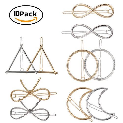 Simple Hair Clip Clamps for Women, 10 PCS Minimalist Dainty Hair Barrettes, Hollow Geometric Metal Hairpin for Girls Thick Hair Styling (Gold and Silver)