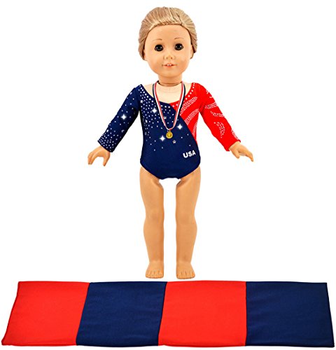 -. Title : Ebuddy 3pcs Diamond Crystal Leotard Doll Clothes For American girl dolls - Includes Gymnastics Outfit, Mat Set, Gold Metal (Patriotic Design for Summer Olympics)