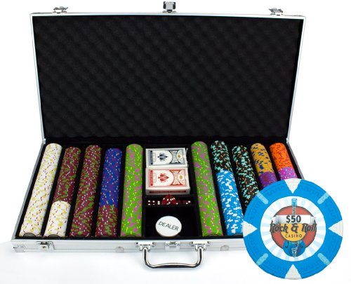 This is the 750 count "Rock & Roll" poker chip set from Claysmith Gaming. The chips are housed in an aluminum case.