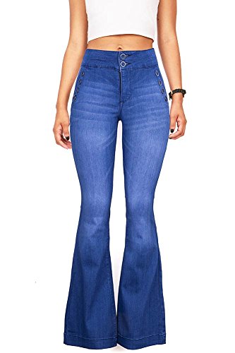 High rise fitted bell bottom jeans with a nautical touch with the button accents on the pockets. Traditional 5-pocket jeans made of comfortable and super stretchy jegging material. Double button and zip fly closure.Feature