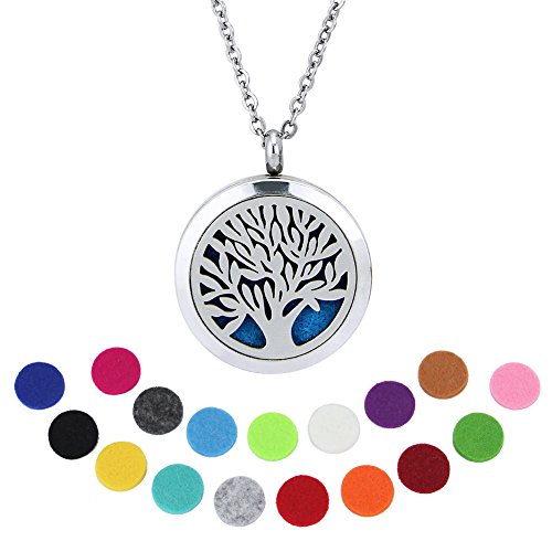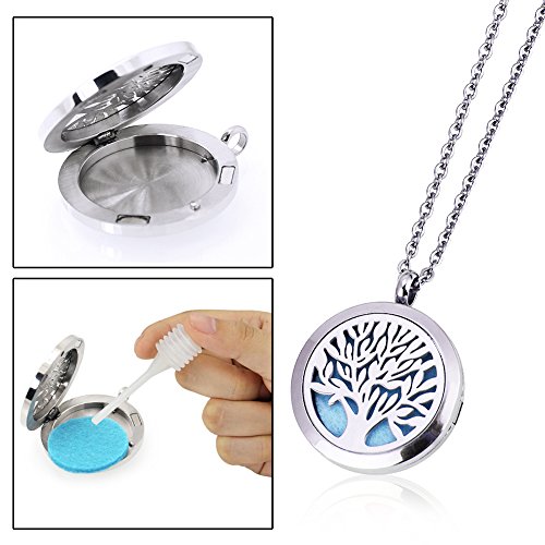 Essential Oil Diffuser Necklace Jewelry - Tree of Life Design - Zilong Stainless Steel Aromatherapy Necklace Locket Pendant with 23.6’’ Snake Chain, 17 Washable Refill Pads