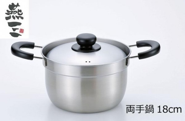 | 深めのフチを採用し、ふきこぼれにくさを追求した両手鍋です。「煮もの」や「温め直し」の調理ができてとても便利。さし水の必要もないので材料に早く火が通り、これまでよりも短時間でおいしく仕上げることができます。たっぷりのお湯で茹でるめん料理でも大活躍です。 |