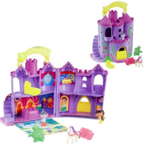 -. Feature : Let's Go Adventure™ Rescue Center comes with Dora, Diego, a leopard, bear, and special explorer's truck. / Let's Go Adventure™ Fairytale Castle comes with Princess Dora, Boots, a dragon, and magical horse-drawn chariot! / There's a carry-around handle for on-the-go play, and all the pieces store inside. Map folds out so you can follow Dora on her adventure!