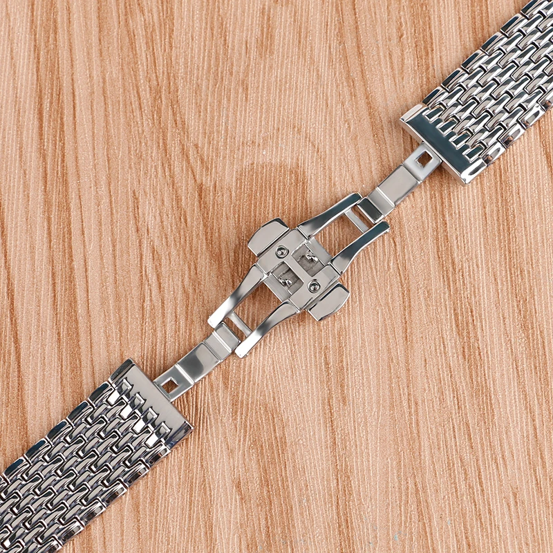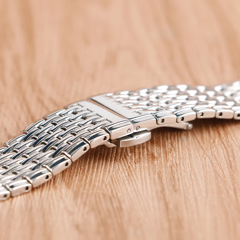 고품질의 스테인레스 스틸 시계 밴드 스트랩 솔리드 링크 + 2 봄 바 푸시 버튼 숨겨진 걸쇠 패션 20/22 미리메터 실버