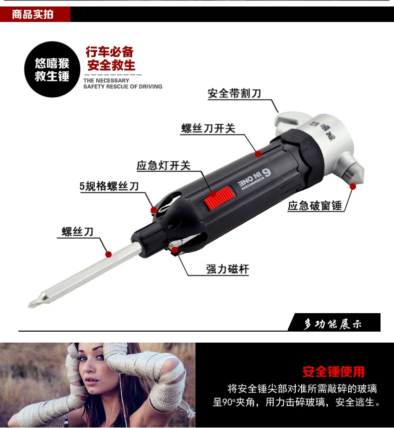 Driving necessary safety and rescue 6-in-1 security firm more efficient one sharp hammer