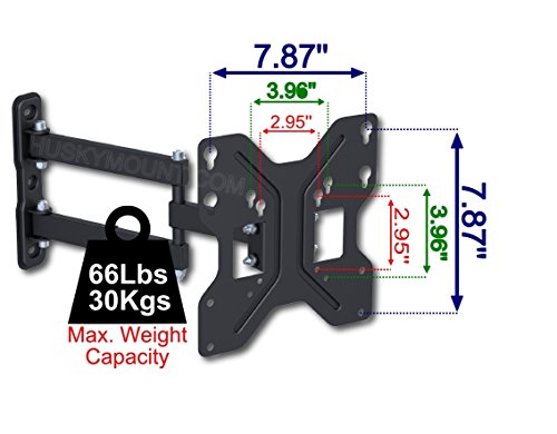 - Title : Husky Mount Full Motion Tv Wall Mount Bracket Heavy Duty Articulating Tilt Swivel for 17 - 40 Inch Flat Screen. Max Vesa 200 X 200 (8"x 8") Corner Friendly with Its Long Swivel Arm. Max Weight 66lbs. All Hardware