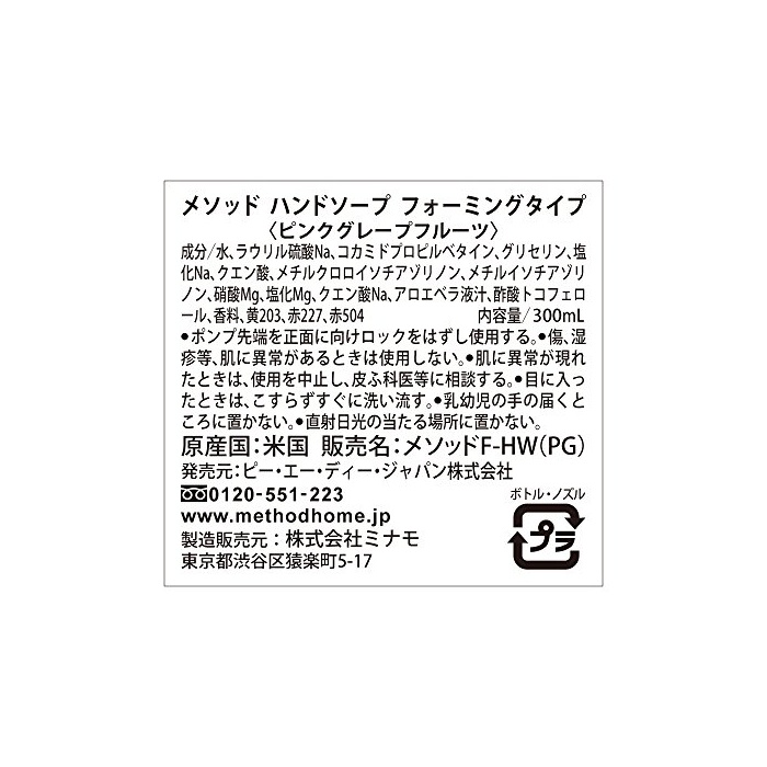 원본상품명: メソッド ハンドソ?プ 泡タイプ ピンクグレ?プフル?ツ 本?300ml
