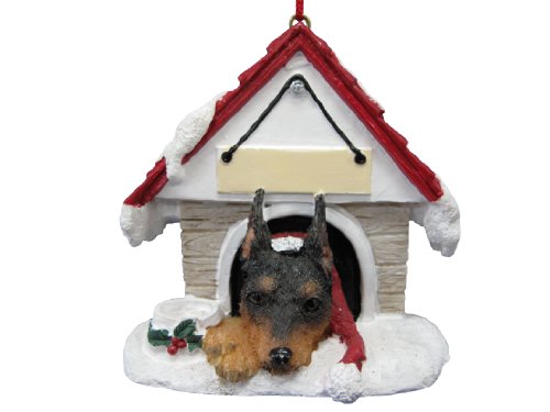 Miniature Pinscher Ornament A Great Gift For Miniature Pinscher Owners Hand Painted and Easily Personalized "Doghouse Ornament" With Magnetic Back