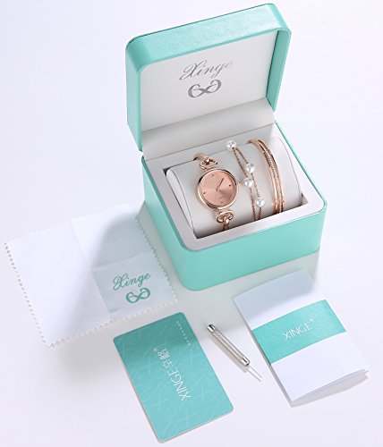 OCCASION AND GENDER: Xinge Women's rose gold watch set is perfect gift for women/girls in Christmas, birthday etc., also fits for everyday wear
