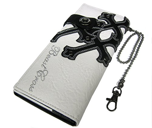 -. Title : 【ノーブランド】ハード系ロングウォレット:フェイクレザー クロス・スタッズ チェーン付き
