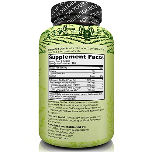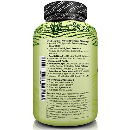 PREMIUM INGREDIENTS - Unlike our cheaper competitor brands using Ethyl Esters, our supplement uses the Triglyceride form of Omega-3, which is proven to provide increased absorption and greater effectiveness. We've also packed an industry-leading 1100mg of Omega-3 into each softgel, which means you only need one capsule per day. This makes NATURELO fish oil more effective and economical than other brands, giving you the most bang for your buck.