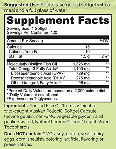 SUPER HIGH QUALITY - Sourced and purified in the United States from sustainable, wild-caught Alaskan Pollock, our fish oil supplement is guaranteed to be the highest quality on the market. We use advanced molecular distillation for exceptional purity and thoroughly test each batch to ensure the oil is free of Lead, Mercury, PCB's, Arsenic, and Cadmium. So, you can rest easy, knowing your body is getting the quality nutrition you deserve.