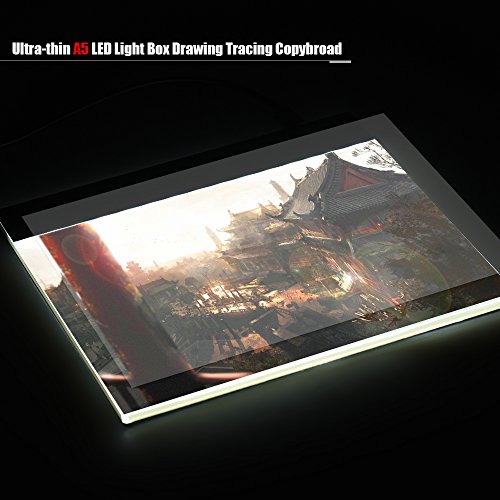 Studio : Aibecy Publisher : Aibecy Binding : Electronics Product Description Features: Mini and Portable: A5 size LED light box for drawing, tracing, stenciling, sketching, etc. Flexible for you to a optimum light by the stepless brightness control, even light for eye-protecting. Ultra-bright can light ≤300g watercolor paper, such as for Canson, Kent paper, non-woven fabric. Reliable material with compact structure, not easy to deform. High transparent acrylic panel with great toughness durability. 5mm of thickness, available area approx. 19 * 15cm / 7.5 * 5.9in. You can easily put it under your coloring book rather than tear the paper off. Micro USB interface for power supply, comes with a USB cable but the adapter is not included. Easy to use, insert the plug turn it on, then you can start your creative work.