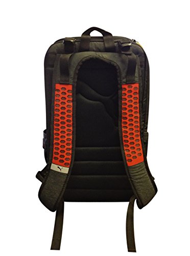 This backpack, specially designed for durability and functionality on the go, makes the perfect luggage for any student. Made from polyester and nylon with traditional Trinomic branding, it features one large and one small compartment, both zippered and containing a padded sleeve. The larger compartment has 2 additional interior pockets, and the smaller one showcases a number of interior pockets for optimum organization. The side pockets are both slip-in and zippered, and a diagonal pocket is featured on the outside of the front compartment. The backpack also features a fabric carry handle, adjustable padded shoulder straps to help lessen back and shoulder aches, and a breathable mesh back with a reinforced PU bottom. Zippers are two-toned and show the PUMA logo. Size is 18.5" x 8" x 12" inches.