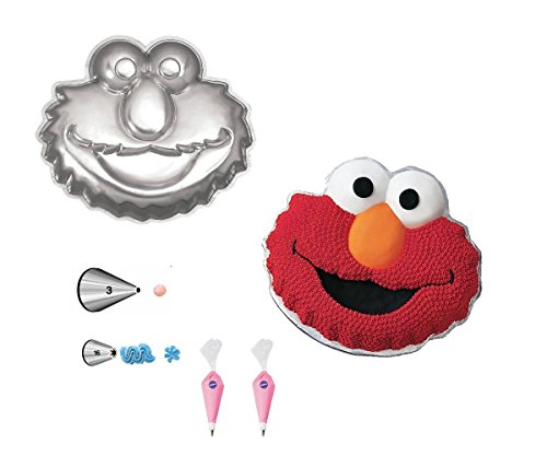 - Bundle includes 5 products: Wilton 2105-3461 Sesame Street Elmo Face Cake Pan, 1 Wilton #3 Round Decorating Tip, 1 Wilton #16 Open Star Decorating Tip, and 2 12" Disposable Decorating Bags