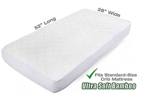 Product Description Premium Super Soft Crib Mattress Protector Pad Made With Eco-Friendly Bamboo Rayon Fiber. Waterproof Fitted Quilted Baby Pad As Seen on Social Media. Effective Stain Protection, Absorbs Moisture 0