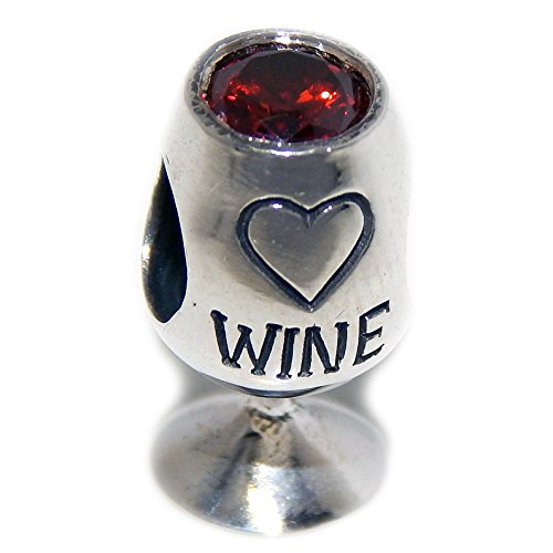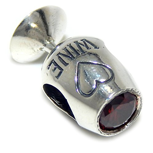 -. Title : Solid 925 Sterling Silver "Wine Glass with Red Crystal" Charm Bead