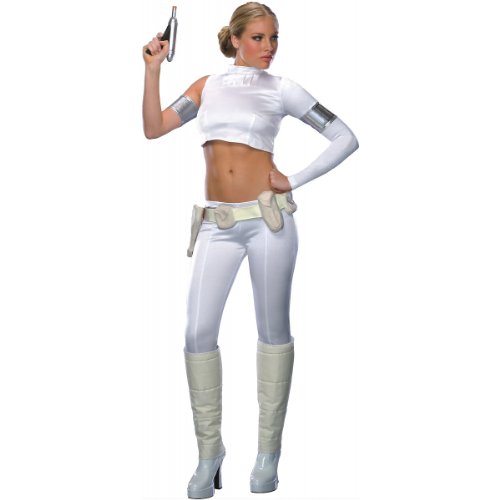 -. Feature : Recreate the look of Padme Amidala at her sexy best with this costume / Cropped top, pants with attached boot tops, rubber belt, and white and orange blaster / White go-go boots available separately / Officially licensed Star Wars costume / Secret Wishes sizing: XS 0 to 2, Small 4 to 6, Medium 8 to 10, and Large 10 to 12