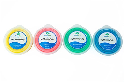 myTherapyPutty is ideal for any rehabilitation or exercise program for fingers, hands and forearms. Our therapy putty is recommended by physio and occupational therapists for muscle coordination, recovery from injuries and is also a popular tool for providing tactile stimulation for those who have sensory processing or integration challenges. Using the therapy putty regularly will slowly build up grip strength, counteracting grip-strength loss (often related to aging) and can also be used by people looking for pain relief from arthritis. The putty is also suited for ADHD and ADD sufferers. This putty comes in four resistance grades, consistent with industry standards and is color coded for easy identification: Yellow - X-Soft Red - Soft Green - Medium Blue - Firm Each resistance grade is packaged in a separate 3-oz container with an easy-open lid. Our 3-oz putty is suitable for adult and children hands. Our putty is non-toxic, non-greasy, unscented and latex-free. It is manufactured from a high quality silicone, which is designed to maintain the resistance level, even with extensive use. myTherapyPutty offers great value for money! Imagine the benefits this product can add to your life. We would recommend this product now! 0 |