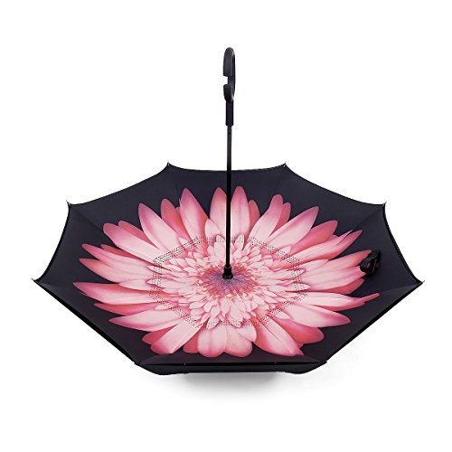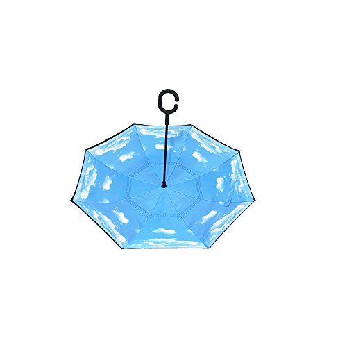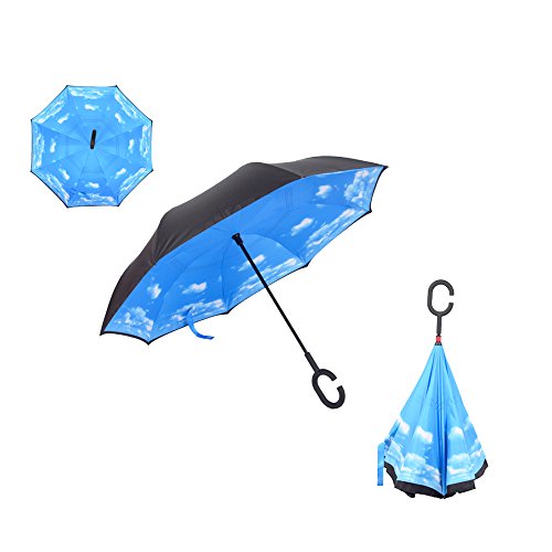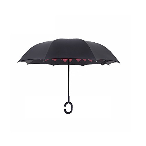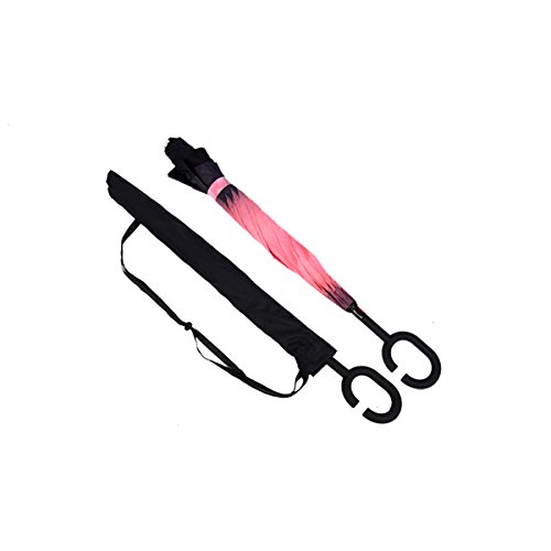 -. Feature : Reverse design, open from outside to inside or close form inside to outside, will not get wet no matter get in or out of the car / C-shaped handle,free hands in the rain / Anti-thunder umbrella hat,no penetration. / Made from high quality steel and fiber,do not worry the heavy rain,will not rust,light and durable. / open size:42inches ,can be for 2 person.