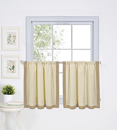Elrene Home Fashions 026865775143 Mitered Border Rod Pocket Kitchen/Cafe Tier Window Curtain, Set of 2, 30" x 24", Linen