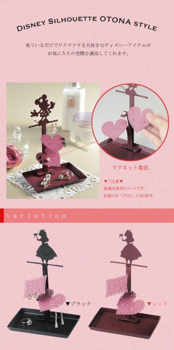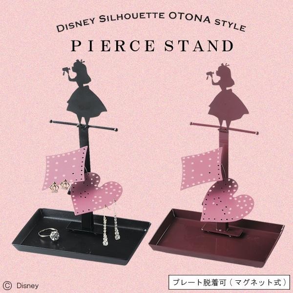 ピアスをかけるプレートはマグネット式で脱着できます。 製造国:中国 素材・材質:スチール 商品サイズ:W8×L12×H19cm 仕様:プレート脱着可(マグネット式) ※サプライヤー直送品 ご注文後3~4営業日後の出荷となります【商品名】セトクラフト DISNEY SILHOUETTE OTONA STYLE ピアススタンド(アリス) ブラック・SD-6194-BK-240
