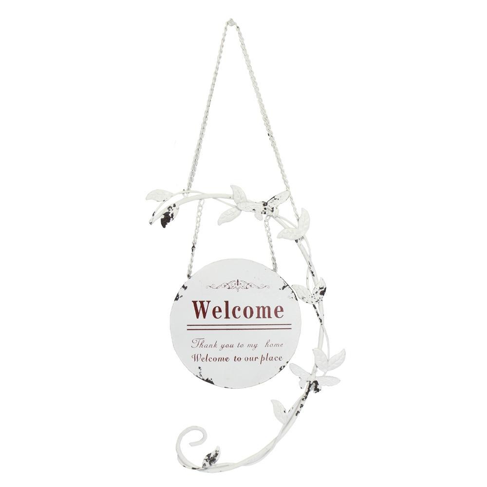 お庭や玄関先に掛けてお客様をお出迎えするのに最適! 製造国:中国 素材・材質:アイアン 商品サイズ:幅23.5×高48cm(吊り鎖含む) 重量:220g ※サプライヤー直送品 ご注文後2~3営業日後の出荷となります【商品名】ハンギングラウンドウェルカム 7056
