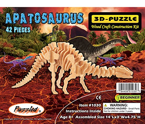 -. Binding : Toy -. Brand : Puzzled -. EAN : 0184499010303 -. Feature : Apatosaurus Dinosaur 3D Woodcraft Construction Kit / 42 piece Wooden 3D Puzzle / Assembled Size: 14'' L x 3'' W x 4 3/4' 'H / All pieces interlock with each other forming a 3D model / NO cutting tools or glue required since all designs are pre-cut -. IsAdultProduct : 0 -. Label : Getting Fit -. Manufacturer : Getting Fit -. Model : 1030 -. MPN : 1030 -. PackageQuantity : 1 -. PartNumber : 1030 -. ProductGroup : Toy -. ProductTypeName : TOYS_AND_GAMES -. Publisher : Getting Fit -. Studio : Getting Fit -. Title : Puzzled Apatosaurus Dinosaur 3D Woodcraft Construction Kit -. UPC : 184499010303 -. Warranty : No Warranty