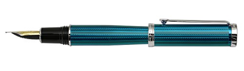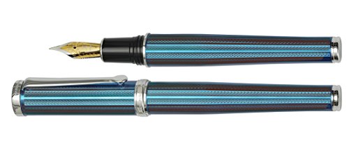 Supplied with gift box, fountain cloth, 4 ink cartridges, ink converter, certificate, and 3-year warranty card. German-made iridium point medium width gold plated nib