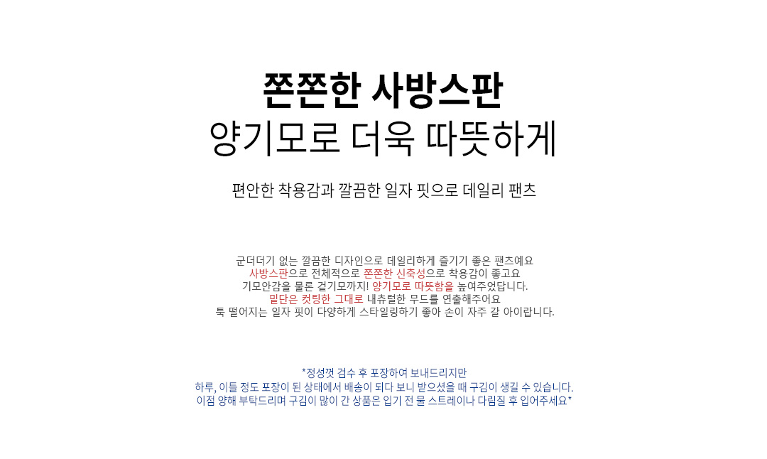 .같은 사이즈라도 체형에 따라 핏감이 조금씩 다를 수 있습니다.