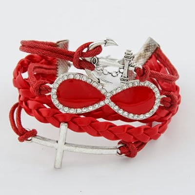 Gelang Korea Multi Charm Salib, Infinity & Jangkar Merah