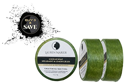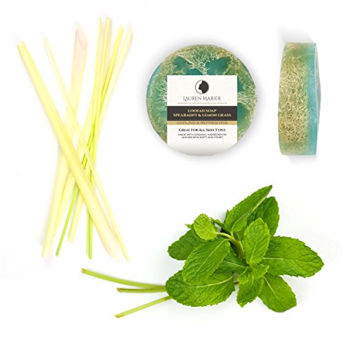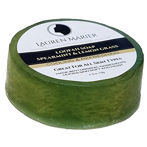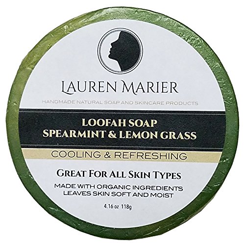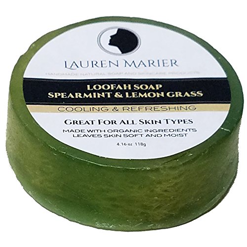 Loofah Mint Lemongrass Soap (Bath Sponge Inside), Handmade in the USA, 100% Organic, For All Skin Types, Face & Body, Men, Women & Teens by Lauren Marier (Loofah Mint Lemongrass Soap, 1 Count)