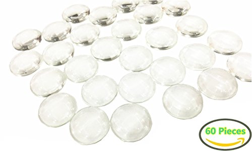60 Pieces Glass Dome Cabochons Clear Round Cabochons Tiles Clear Cameo, Non-calibrated Round 1 inch/25mm For Cameo Pendants, Photo Jewelry, Rings, Necklaces