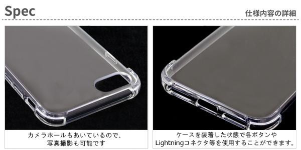 5Hの耐久性がある背面と、側面のしなやかな弾力性のダブル保護!!小さな傷もつきにくく、落下時に最も衝撃が大きい角部分への衝撃を吸収し緩和させます。ケースを装着した状態で写真・動画撮影、各ボタンやLightningコネクタ等が使用できます。 |