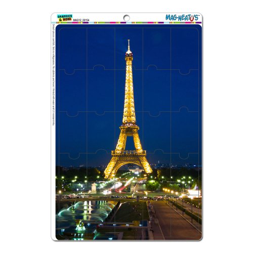 -. Title : Graphics and More Paris Eiffel Tower at Night Mag-Neato's Novelty Gift Locker Refrigerator Vinyl Puzzle Magnet Set