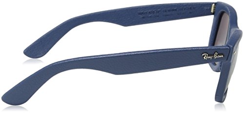 As part of their new and exclusive collection, these Ray Ban RB2140QM 116871 50 Leather Wayfarer Sunglasses in Blue are the latest contemporary update to the original 1956 design. A classic cut through and through with perfectly formed thick arms and flared brow, these Ray Ban Wayfarers are now featured in soft deep blue leather for an edgy urban feel. Bearing the authentic Ray Ban logo at the temple and 50mm gradient grey lenses, these Ray Ban sunglasses merge modern eyewear technology with old school style and class.