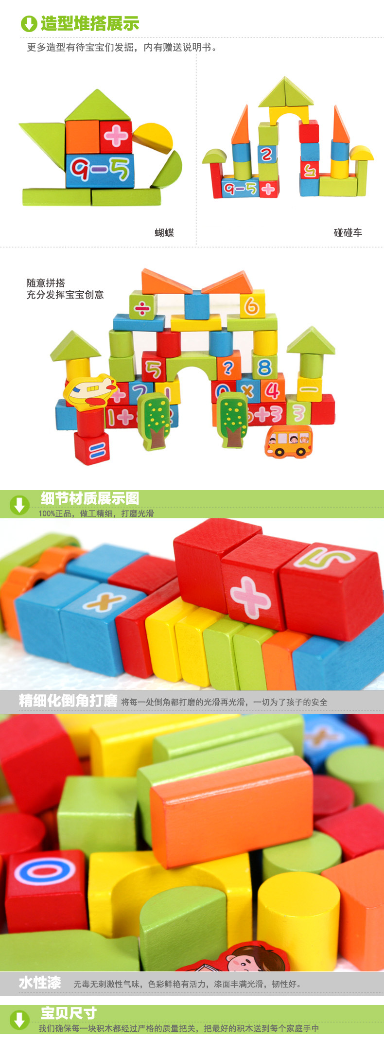3、参考图册上的拼装多样造型,可以锻炼宝宝的实际操作能力,也可以让您的宝宝自由发挥,开拓想象力,发挥创造力。使宝宝的手、眼、脑能很好的协调,让您的宝宝思维更敏捷。