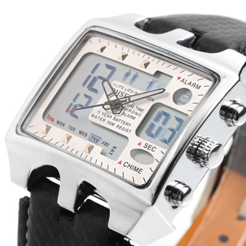 -. Title : AMPM24 Oshen Silver LCD Analog Mens Digital Sport Quartz Watch OHS034