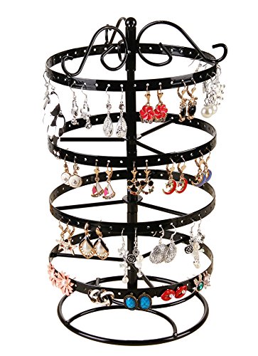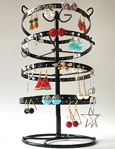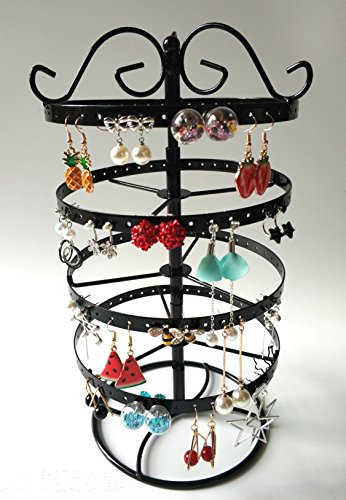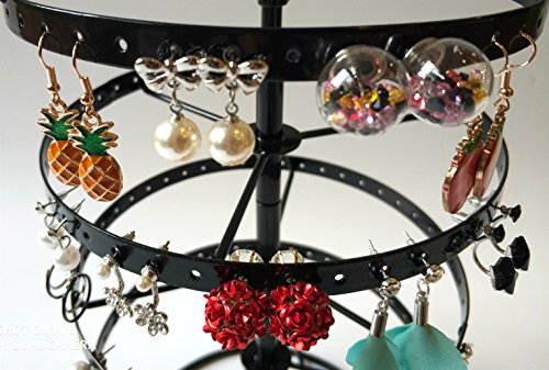 SURAVO 4 Tiers 88 Pairs Detachable Rotating Jewelry Organizer Earring and Necklace Holder Display Stand (Black)