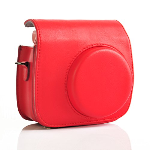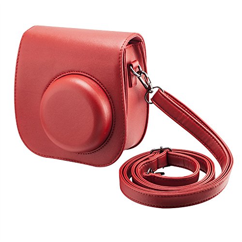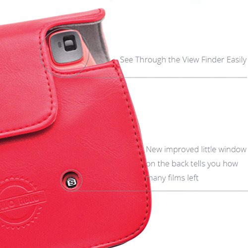 Fujifilm Instax Mini 8 Case -HelloHelio Classic Vintage PU Leather Instax Camera Compact Case For Fujifilm Instax Mini 8 Instant Film Camera (Raspberry)