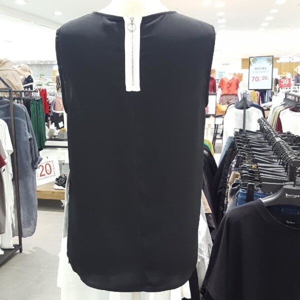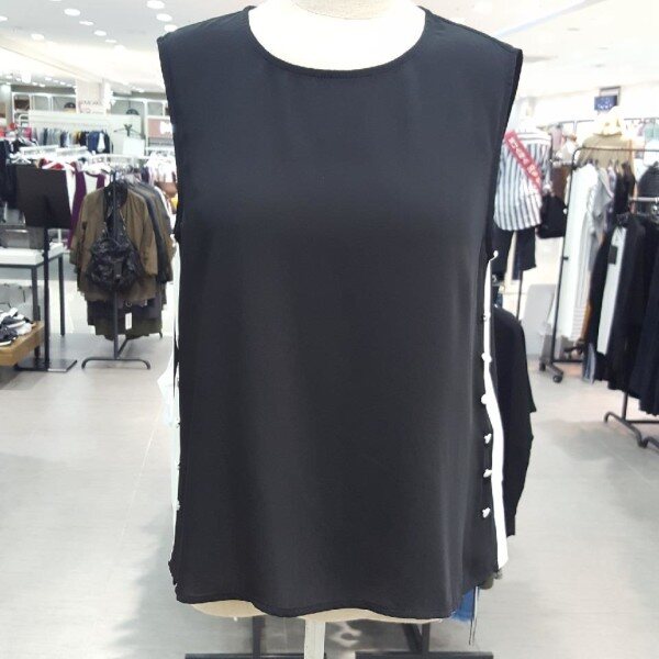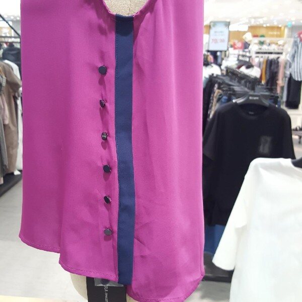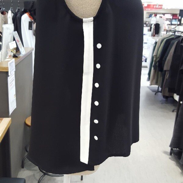 #와끼배색버튼슬리브리스BL블랙과 바이올렛 두 색상으로 심플하지만 꾸민듯하게 코디가 가능한 제품입니다.