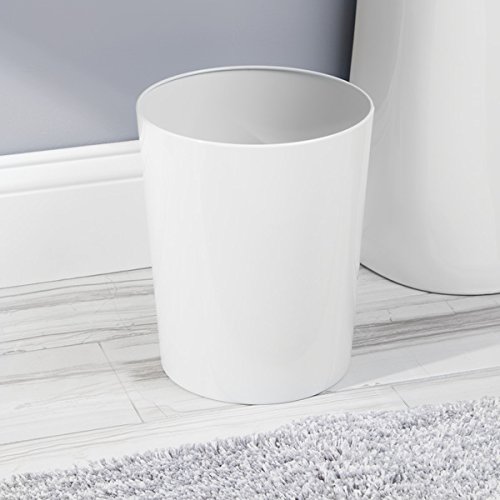 mDesign Round Metal Small Trash Can Wastebasket, Garbage Container Bin for Bathrooms, Powder Rooms, Kitchens, Home Offices - Durable Steel with White Finish