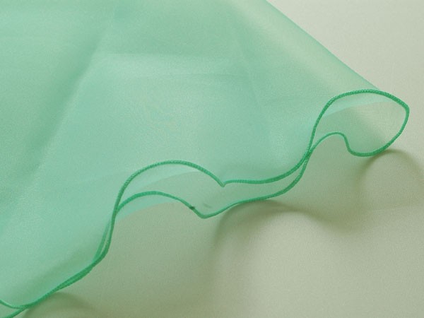 さまざまなバリエーションをお楽しみいただけるリーフデザインです。(えんぴつのように両端がとがっています) シンプルなオーガンジーショールですが、贅沢にバイアスで裁断し、ふちが波打つようにデザインしています。 スパンコール、ビースで加工をほどこしたり、刺繍でお花などを描いても楽しく新しいストールに生まれ変わります。 ぜひチャレンジしてみてください。
