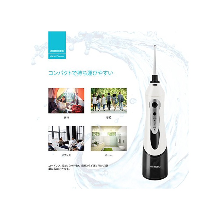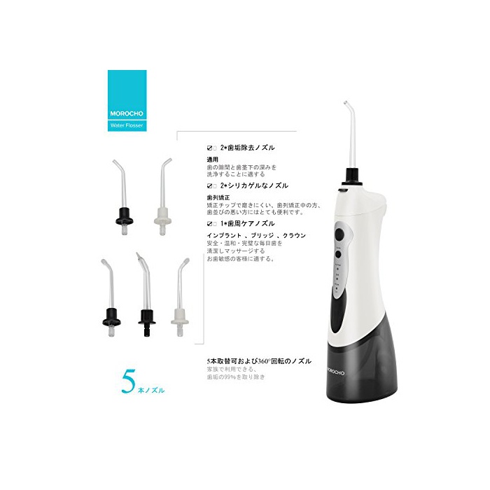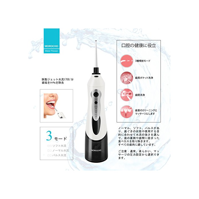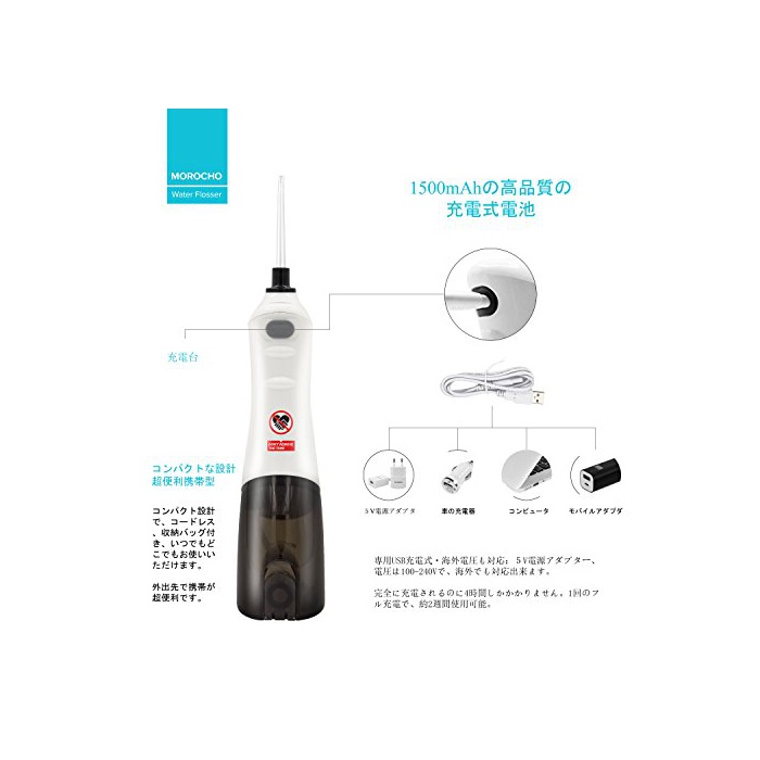 원본상품명: 口腔洗器 MOROCHO 電動式 ジェットウォッシャ 口臭防止 間ジェット洗 携型 USB充電式 ズル5本付き【18月保】