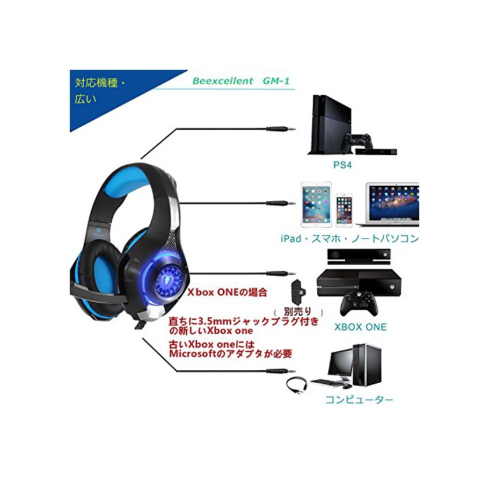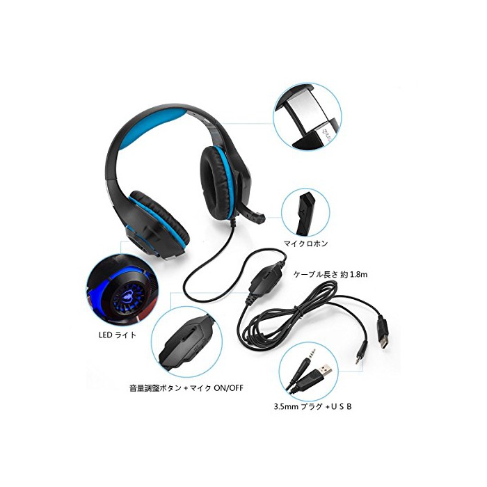 원본상품명: Beexcellent PC ゲミングヘッドセット 有線 3.5mm ステレオ 音隔離伸縮可能マイク付 量 ブル