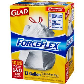 -. Feature : Glad ForceFlex Tall Trash Bags 13gal White 140ct